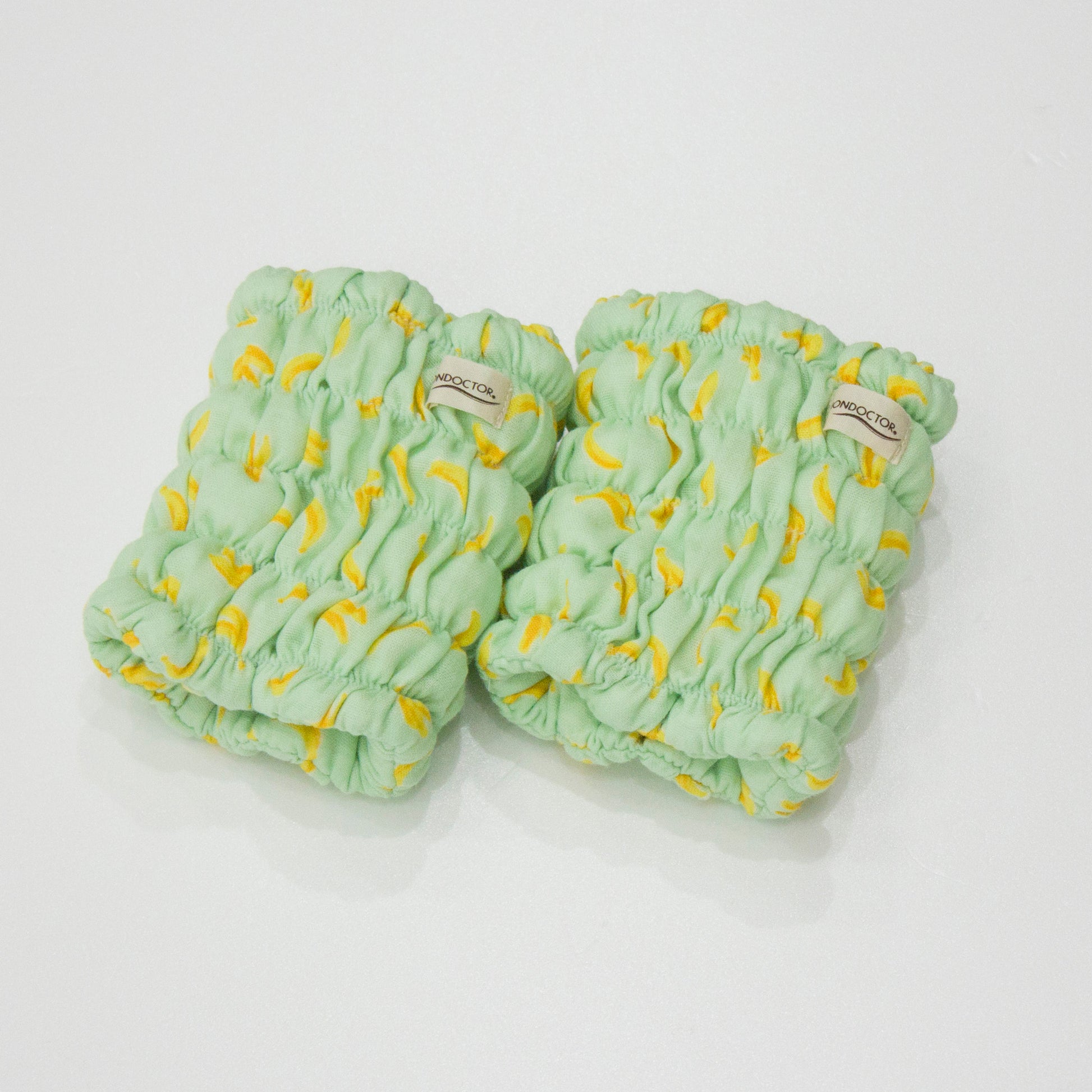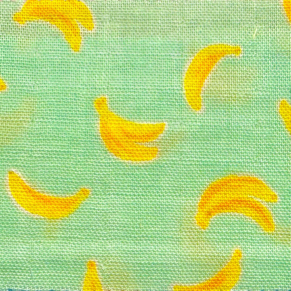 ミントグリーンに小さなバナナが散りばめられた、やさしい雰囲気のデザインです。