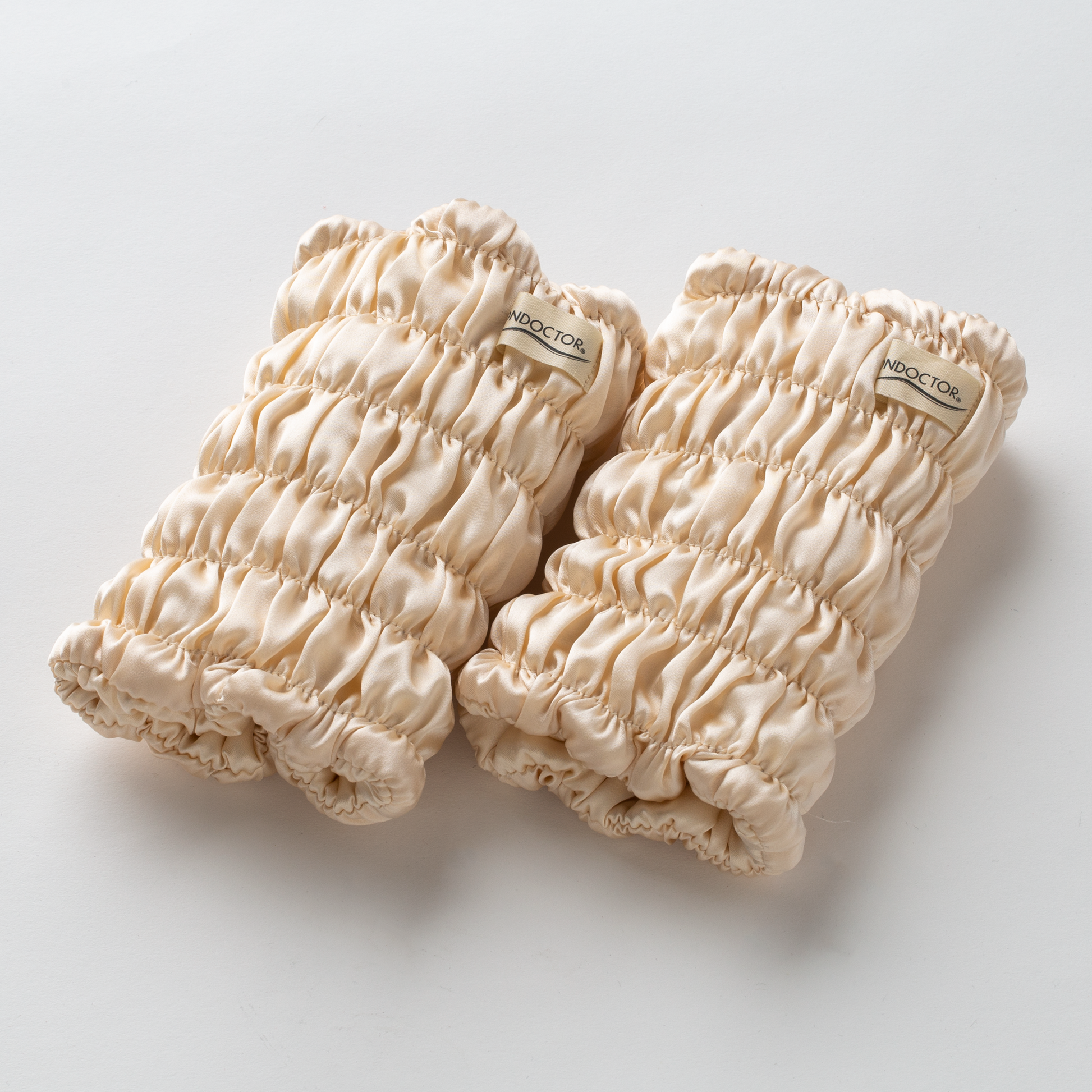 この高級シルクの素材でイオンドクターの特徴である天然鉱物パウダー加工の中わたを包み込みました。